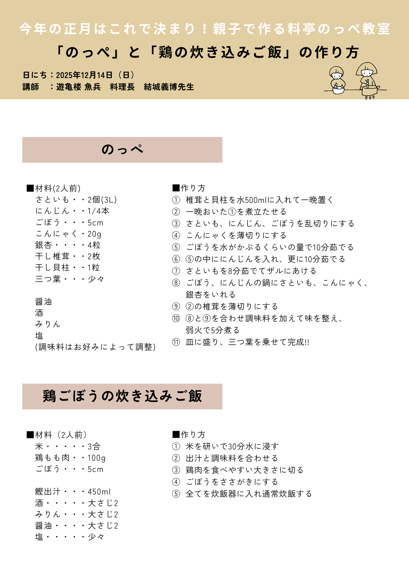 2025年12月14日、三条市総合福祉センターにて「今年の正月はこれで決まり!親子で作る料亭のっぺ教室」を開催いたしました。